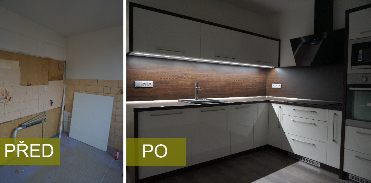 - nakonec kuchyně, vestavěný nábytek a dveře.